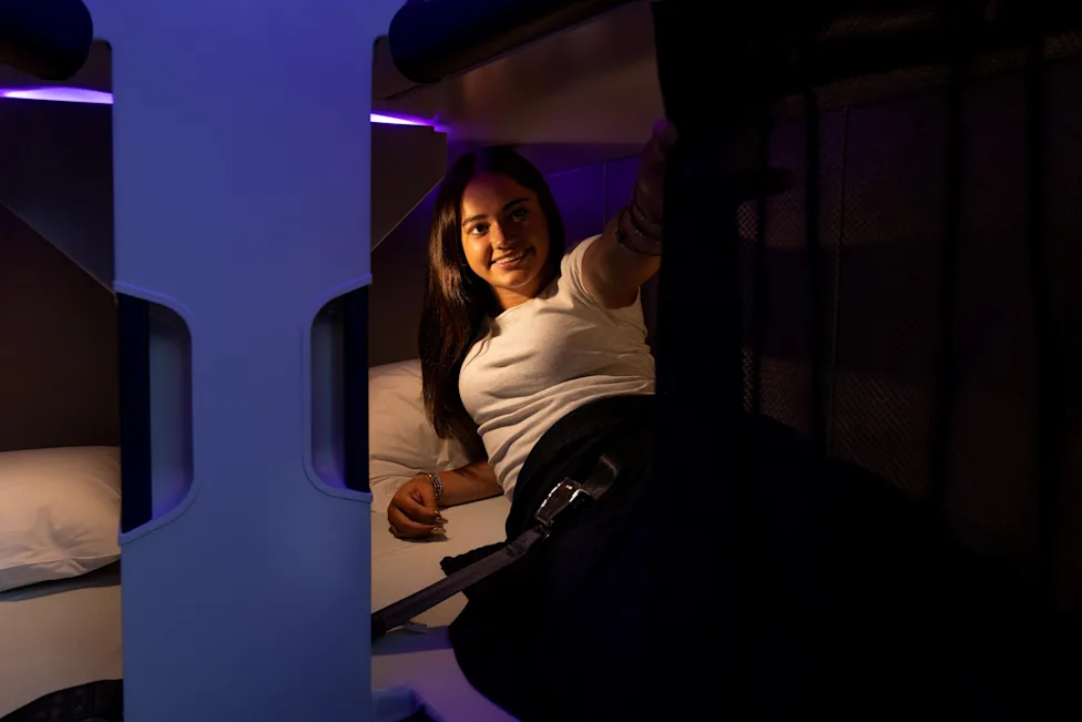 The Skynest introduces a shared sleeping model within economy—an industry first for scheduled commercial flights.
