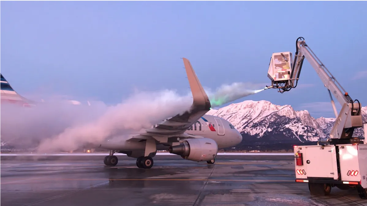 De-icing is a critical flight safety procedure conducted before departure during icy or snowy conditions. According to the American Airlines’ official guidance, this process involves applying heated glycol-based fluids to remove and prevent ice and snow accretion on wings, control surfaces, and critical aerodynamic areas.
