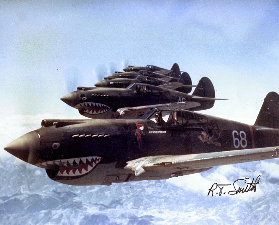 American Flying Tigers became famous for their nose art depicting a shark’s mouth. These tigers embarked on their raids on the American Curtiss P-40 aircraft, which were painted with shark’s teeth. The following image gives us an idea of how these Tigers lined up in the battlefields.
