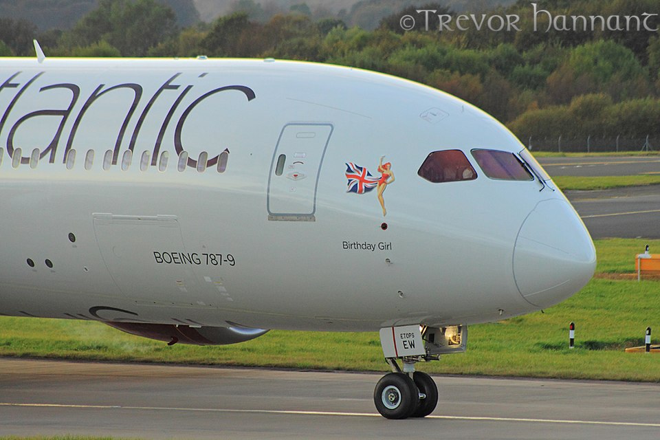 Virgin Altantic’s fleet comprises 29 historical Airbus A340s. Although the carrier operates a total of 80 aircraft (including Airbus A330, 787 Dreamliner, among others), its Airbus A350 has the same nose art as its historical A340. The same is true of its Airbus A330. Under such scrutiny, one would find that Virgin’s Dreamliner has a different nose art than others. Here’s a sample: