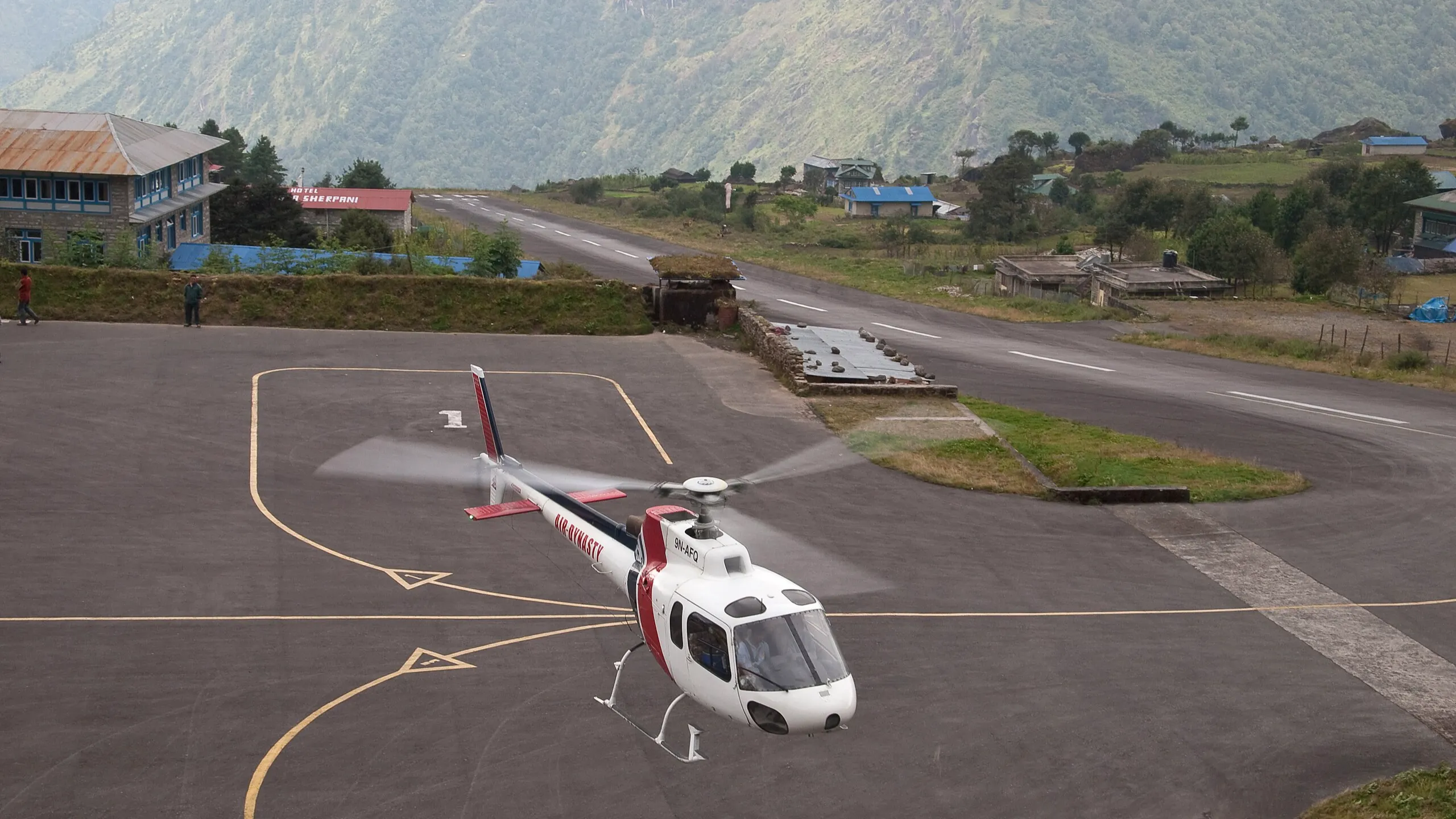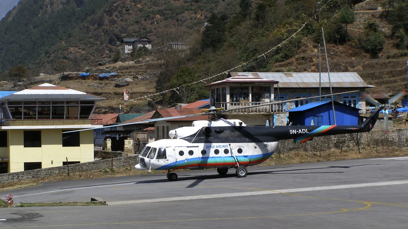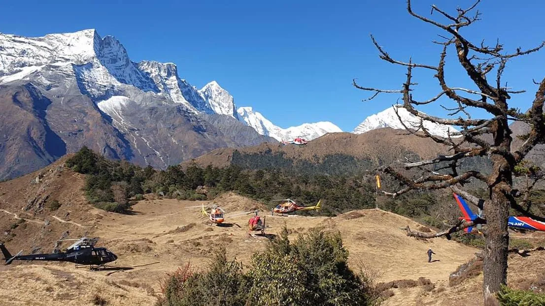 Helicopter operations in Lukla Airport.