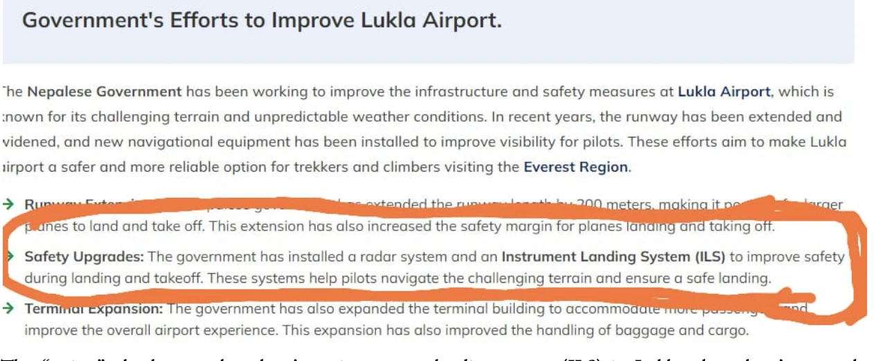 The “writer” clearly says that there’s an instrument landing system (ILS) in Lukla when there’s no such arrangement in any of the airports in Nepal. Most travel blogs operated in Nepal are written by people who’ve never been to any of the destinations they are reporting about. Aviation journalism has received a lot of flak in the country, and with pieces like the screenshot above, there’s very little “authentic” information one is likely to find.