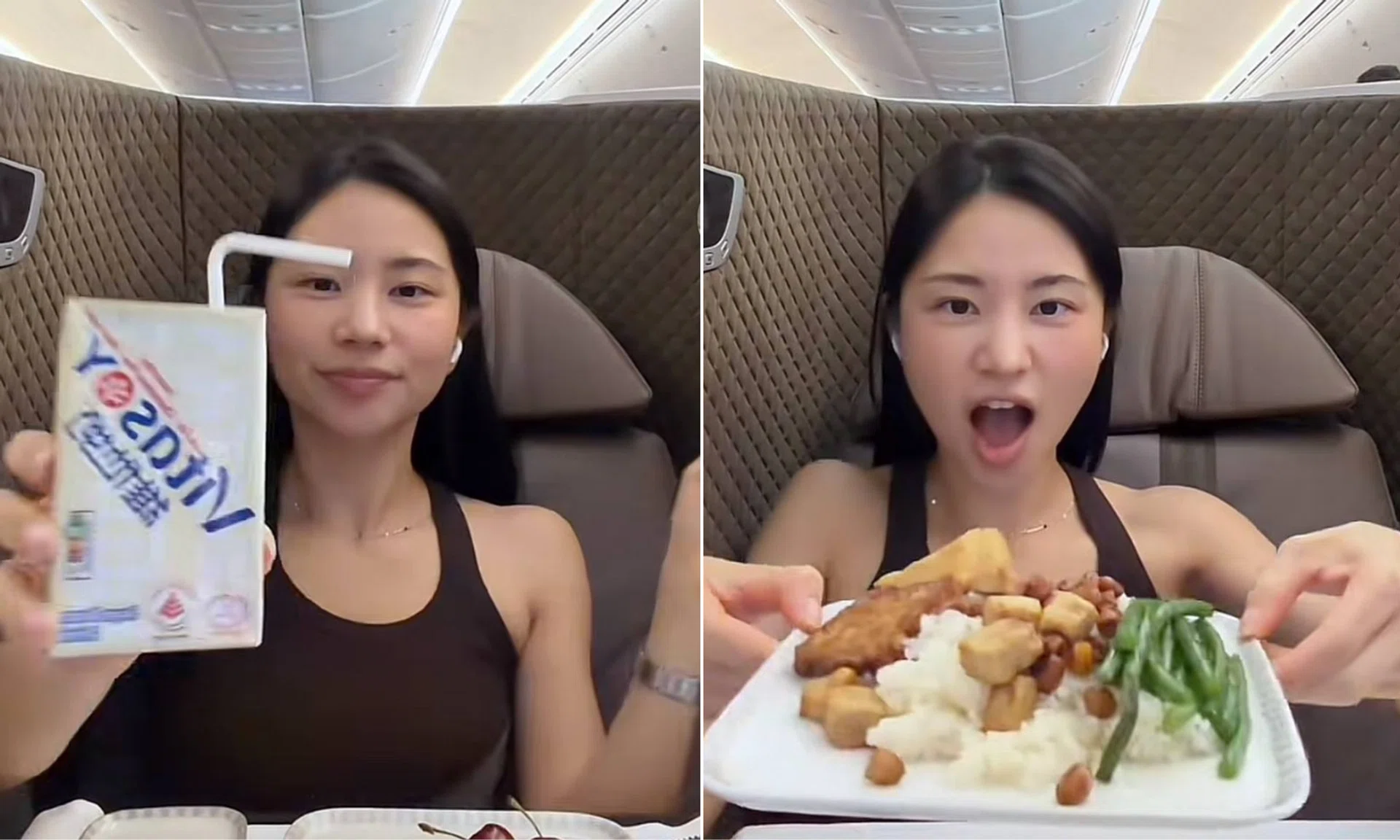 Mia You’s viral video was posted under the format “What I ate on the flight: anxious flyer edition” during which she documented her meal service and then one can see Mia panic during moderate turbulence.