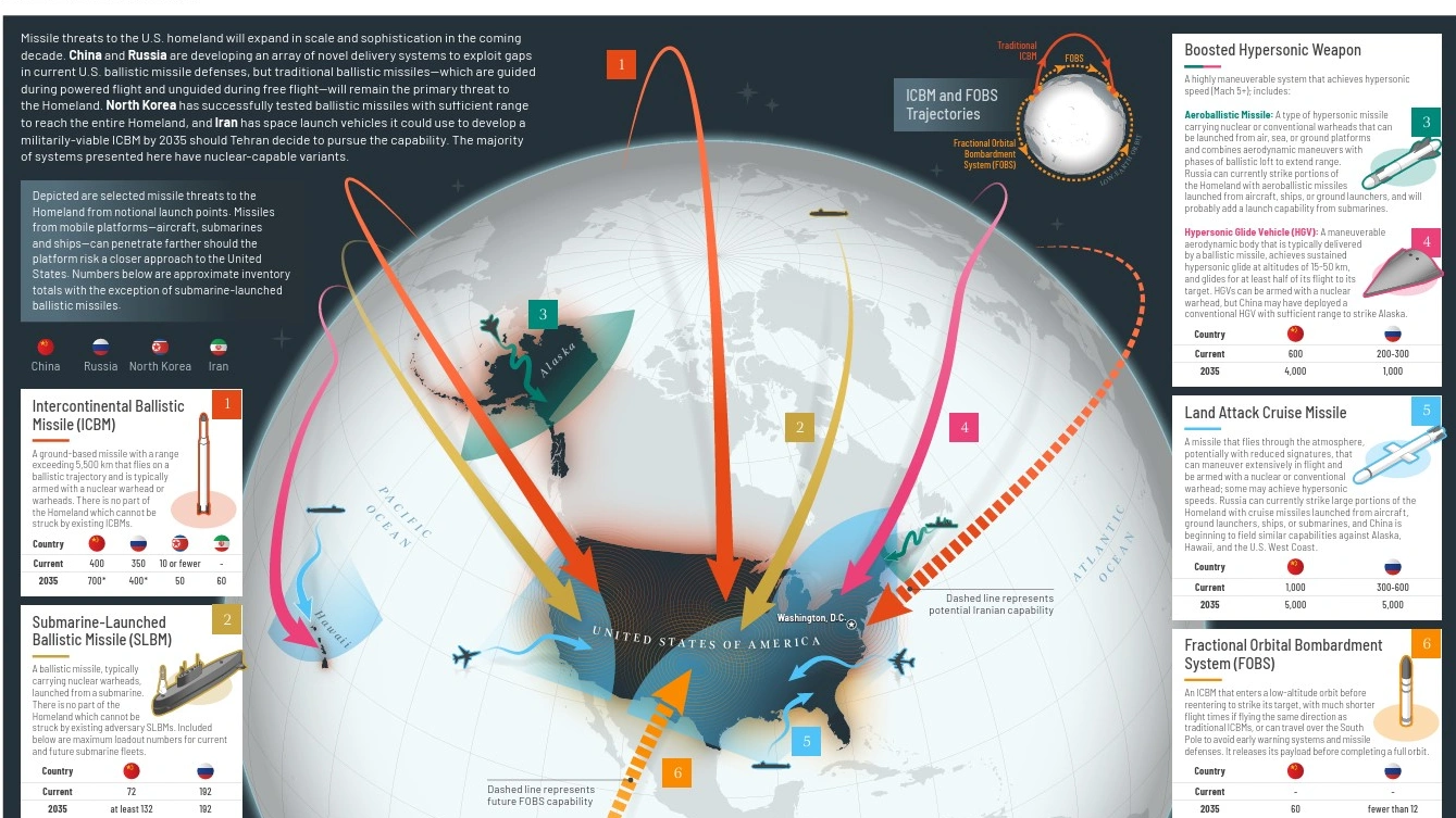 The following are the types of threats that the Golden Dome is designed to address: